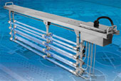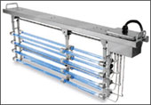 - ระบบฆ่าเชื้อโรคด้วยแสงยูวีพร้อมรางสำเร็จรูป (Package UV Disinfection System) รุ่น C3 150 PS เป็นอุปกรณ์ที่มีความก้าวล้ำเป็นคำตอบอย่างมีประสิทธิผลทางด้านราคาต่อการฆ่าเชื้อโรคที่มีมากับน้ำเสีย ด้วยระบบฆ่าเชื้อโรคด้วยแสงยูวีที่ก้าวล้ำนำสมัย (State-of-the-art) เพื่อการรองรับขนาดของระบบบำบัดจาก 50,000 ถึง 1,000,000 แกลลอนต่อวัน (200 ถึง 3,800 ลบ.ม./วัน)